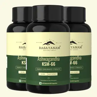 Rasayanam KSM66 is a specially formulated capsule developed by experts after years of research to address key health concerns and enhance overall well-being in a convenient formula.
